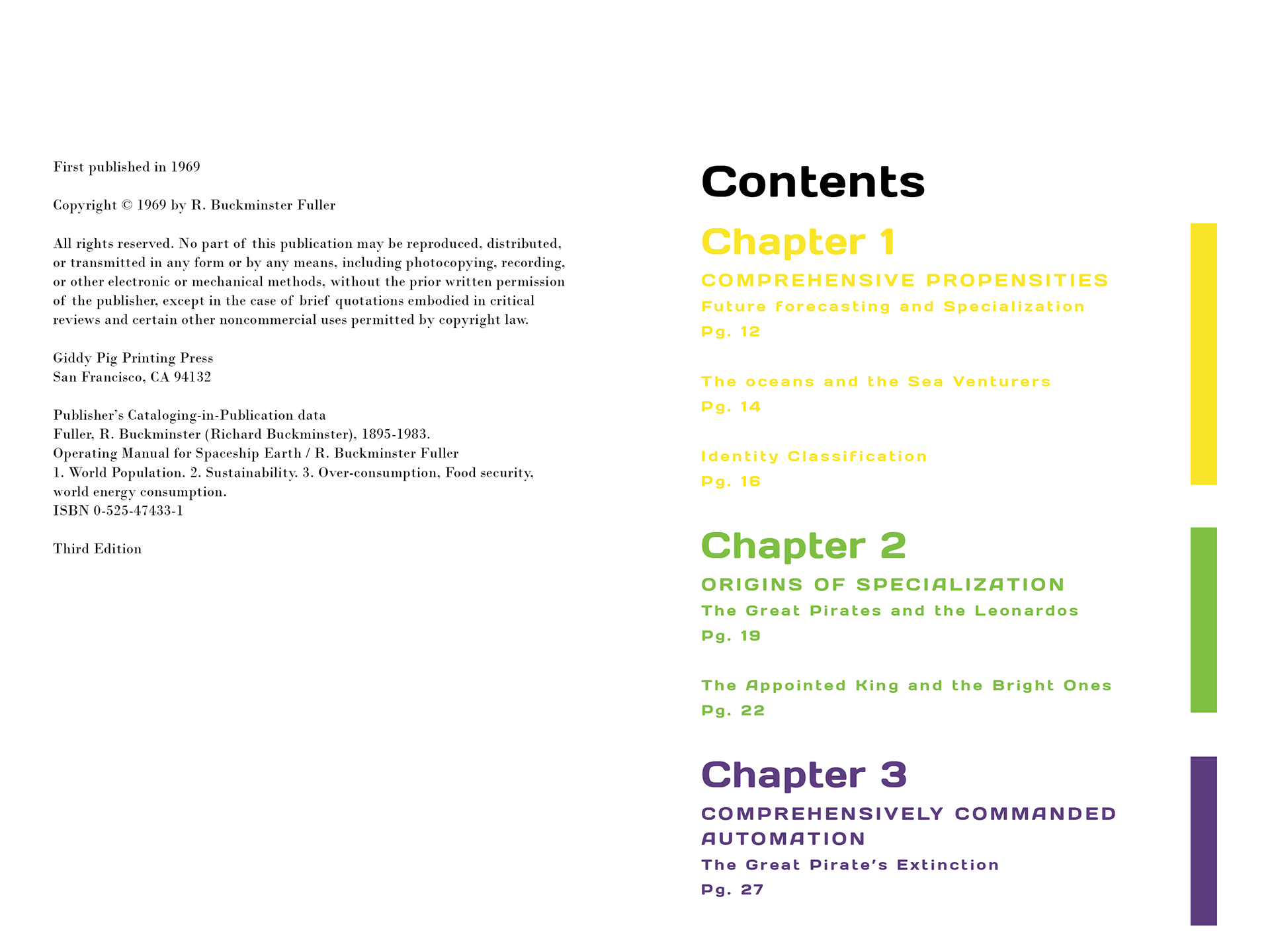 Redesign of Buckminster Fuller's Book "Operating Manual for Spaceship Earth" published in 1969.